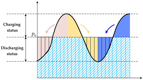 As shown in the figure, Pe is considered as an energy storage device in a no-storage state. When the power consumed by other processes at a given moment is greater than Pe, the electrolysis aluminum processes consume more electricity, and this can be viewed as the “electrolysis aluminum process” energy storage device being in charging mode at that moment. Similarly, when the power consumed by other processes at a given moment is less than Pe, the electrolysis aluminum processes consume less electricity, and this can be viewed as the “electrolysis aluminum process” energy storage device being in discharging mode at that moment.