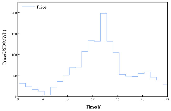 In the formula, F, FG, Fw, Fwc, and Fbat represent the system operating cost, thermal power unit operating cost, wind power operating cost, wind curtailment penalty cost, and battery storage operating cost, respectively. λw is the wind power unit operating cost; λwc is the unit wind curtailment penalty cost; λch is the wind power grid connection price; λdis(t) is the real-time electricity price at time t.