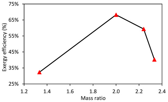 Figure 5 shows the variation of the exergy efficiency with the mass ratio.