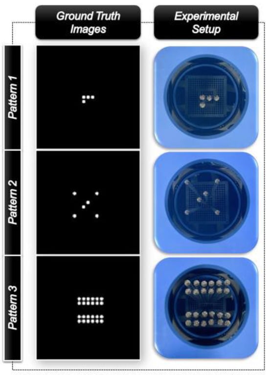Example of ground truth images and experimental setup for defective fuel rod patterns.