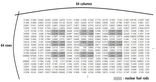 Figure 7b, six out of the nine fuel rod positions contain fuel rods. Although the first column of the first row is empty, the energy emitted from the rods in the second row of the first column and the first row of the second column makes the first row of the first column appear bright as if it contains a rod. To achieve enhanced classification performance, it is necessary to consider not only the brightness information located at each fuel rod position but also the surrounding pixel information.