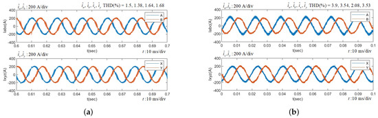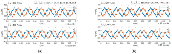 Using the low-pass filter, we remove the AC components in and . Current control can be performed in the positive and negative sixth HSRFs. The fifth and seventh current harmonic controller can be designed as follows: