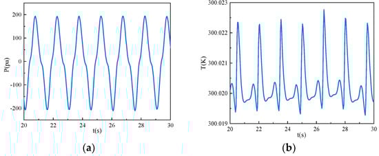 The pressure and temperature inside the air chamber were selected as inputs to the PTO system for H = 0.2 m and T = 1.5 s, . The inputs to the PTO system after the air chamber operation has stabilized are shown in Figure 22.