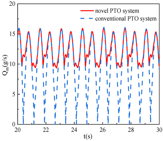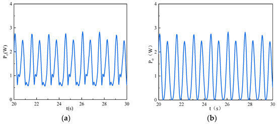Comparison of the system’s output power: (a) novel PTO system and (b) conventional PTO system.
