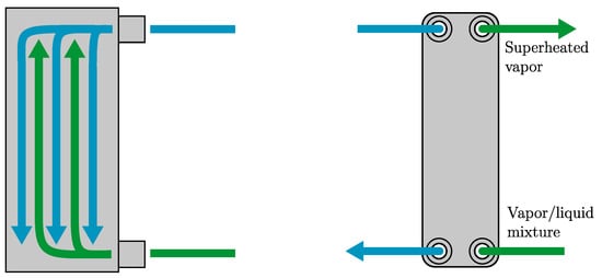 The coolant-to-refrigerant heat exchanger was implemented as the brazed plate heat exchanger in