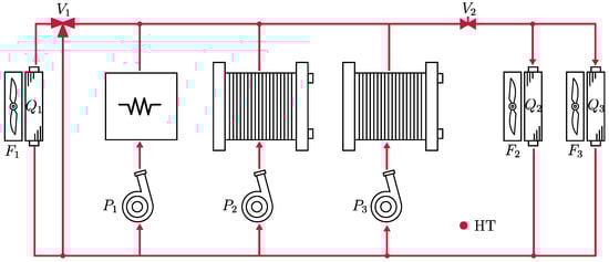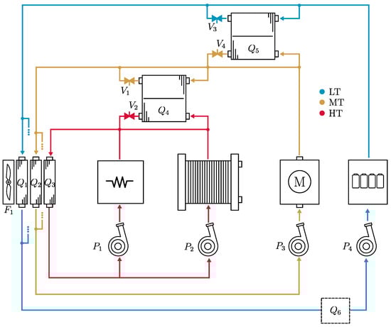 62] (from automakers Rivian, DAF, FORD, GM, Nikola, Volvo, Toyota, Hyundai, and Renault) investigating or comparing TMS architectures were considered and the systems presented within sorted into a number of archetypes which became the basis of the schematics shown below. The goal of the survey was to investigate what academia and industry considered as state-of-the-art TMSs.