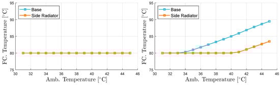Figure 8. The objective of the scenario was then to determine the maximum possible ambient temperature for each system when maintaining a stack temperature of 80 °C.