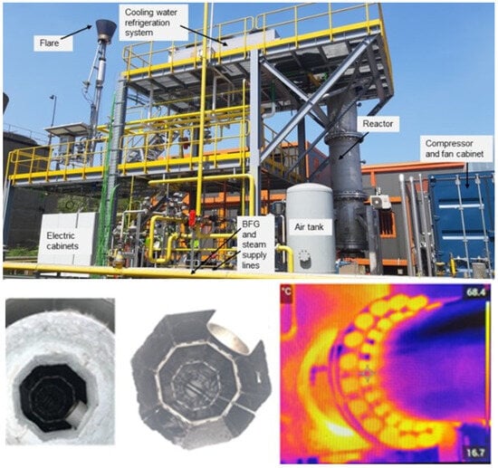 Unfortunately, there are still no commercial-scale CO2 capture plants for blast furnace-based steelmaking in operation. Potentially, there is significant difficulty in achieving high CO2 capture efficiencies in these types of steelmaking plants, as they have multiple sources of carbon emissions, and retrofitting multiple CO2 capture systems would incur substantial additional costs [8,9]. Blast furnace gas (BFG) alone is responsible for nearly 70% of the emissions from a conventional steel plant. BFG is a residual off-gas with very high carbon content (i.e., CO+ CO2 > 45 vol.%) and a very low heating value (LHV < 3.5 MJ/Nm3), which is primarily used today for on-site power generation and for reheating blast air and coke ovens in order to improve energy efficiency and reduce external energy dependence [10,11]. The possibility of focusing efforts on decarbonizing blast furnace gas (BFG) has emerged as an attractive solution to extend the life of blast furnaces beyond 2050 and meet the decarbonization goals of the steel sector [12].