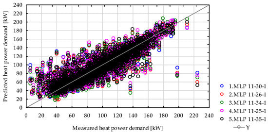 Each network generated a single output, representing the predicted heat demand. The dataset used comprised 18,184 valid records, which were randomly divided into training (70%), testing (15%), and validation (15%) subsets.