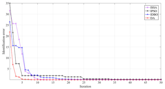 Comparison of the convergence curves of the total identification error.
