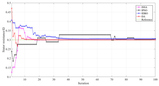 Convergence curve comparison of various methods for stator resistance identification.