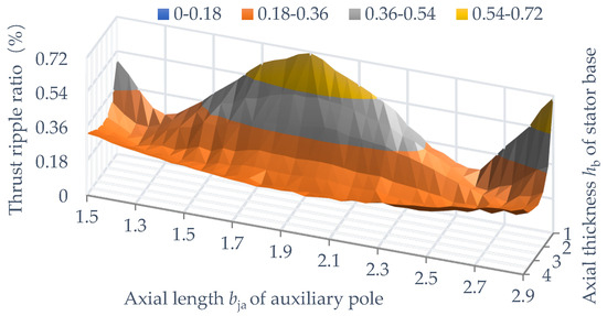 Thrust ripple ratio—the axial length bja of the auxiliary pole/the axial thickness hb of the stator base.