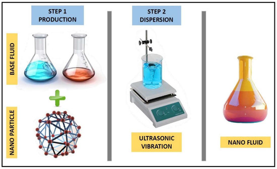 Recently, the two-step method has gained significant popularity in industrial applications due to lower costs for production compared to the single-step method. Despite advancements, agglomeration of nanoparticles remains a challenge in the two-step method, leading to ongoing instability issues in suspensions [80]. A study compared Ag nanofluids prepared using two different methods for their thermal application [81]. The two-step preparation methods investigated by previous researchers are listed in Table 3.