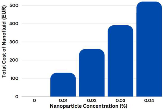 where V—velocity of sedimentation of particles, µ—viscosity of fluid, —spherical object radius, and are the particle and fluid density and is gravitational acceleration. From the above equation, it is observed that lower sedimentation velocity of nanoparticles contributes to improved nanofluid stability. This is due to the reduction in R, elevating μ, and minimizing the difference between and . To prevent nanoparticle accumulation while preparing nanofluids, it is essential to ensure the use of smaller-sized nanoparticles. The latter are characterized by lower sedimentation velocity, thus reducing the risk of aggregation and increasing the dispersion of particles in the fluid. These aspects help uphold uniform properties and thermal performance [64].