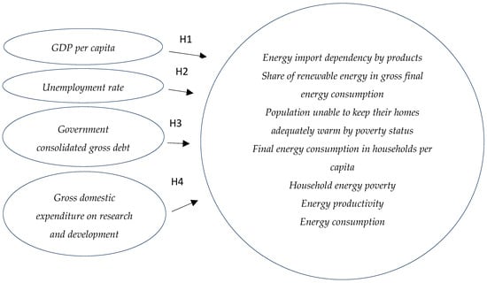 - Gross domestic expenditure on research and development towards final energy consumption in households per capita (r = 0.59), population unable to keep their homes adequately warm by poverty status (r = −0.50) and share of renewable energy in gross final energy consumption (r = 0.42).