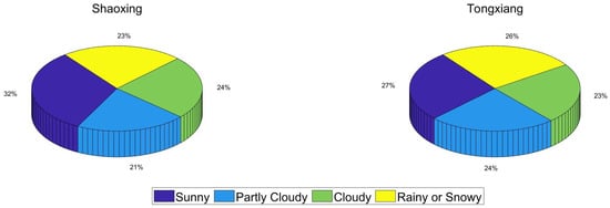 For many PV power generation systems, due to storage and other practical constraints, the sampled data often show a small amount of data accumulation and unbalanced data distribution, and so on. As shown in Figure 5, from the historical weather distribution, the weather conditions at Shaoxing station are similar to those at Jiaxing, but, looking at the history of sampling data, the sampling data of Shaoxing station are full, close to the historical weather distribution. At the same time, the historical sampling data of Jiaxing station are too small to reflect the historical distribution, thus causing a large prediction error.
