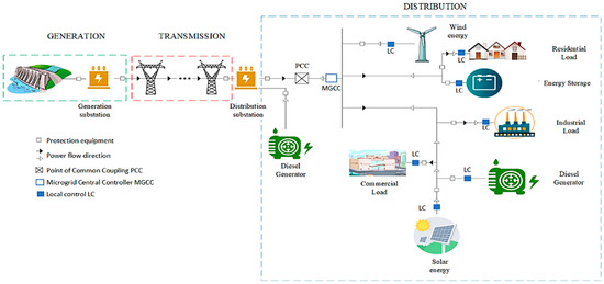 To understand what an MG is, one needs to understand what the terms smart grid refers to. A microgrid (MG) is an electrical system that can operate autonomously or is connected to the main network, and that integrates distributed generation sources, storage devices, and local loads. MGs are an application of smart grids, which are electricity distribution systems that use digital and communication technologies to manage energy resources efficiently, sustainably, and economically, including renewable sources such as solar and wind [38,39].