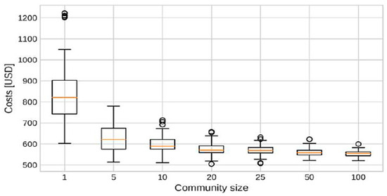 Figure 7 shows a comparative diagram between investment cost and community size for MGs. Simulation results show that the larger investment costs are reduced due to various factors such as greater stability in the system, as well as lower energy and operating costs.