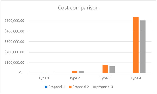 Figure 12 shows a cost comparison between the different proposals for each of the NIZ typologies. As previously mentioned, proposal 1 (solar–wind), is the most economical, as evidenced in the graph. However, due to its generation scope, it is only recommended for typology 1, while proposal 3 (solar–wind–hydro) is ideal for larger groups, since, in terms of cost, it is a little cheaper than proposal 2. Finally, proposal 2 turns out to be the most expensive of the proposals presented, but it is highlighted that this proposal was designed with the purpose of using the two most widespread resources in the Colombian territory.