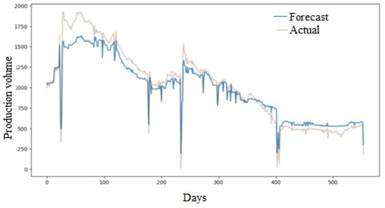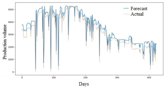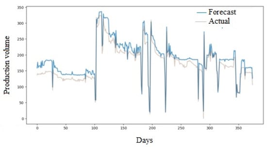 A small increase in the rate of field development will entail an increase in production volumes and reduce the cost of hydrocarbons produced. The amount of time required to obtain a production forecast is analyzed. The program developed in the current work receives a set of data at the input, which specifies the necessary parameters. When they are changed at the field, it is implied that the data are entered into the specified set by loading information from sensors, or manually changed by managers. We imagine that this operation is also performed using a more traditional method of determining production volumes using software. However, the time spent obtaining a forecast by a machine learning model is much less than the use of various methods by a person.