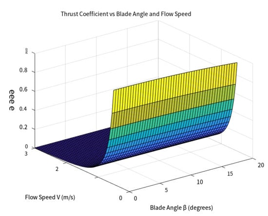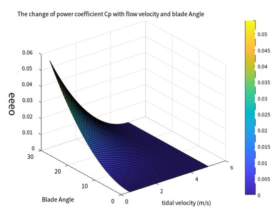 The power of the supporting generator was 300 kW, which determines the power generation capacity of the whole tidal current turbine system. The speed range of the turbine was set according to the actual working conditions. In normal operation, the speed range was roughly 10–30 RPM. The speed range was determined based on the flow rate range of the tidal flow energy and the design efficiency of the turbine, ensuring that better energy conversion could be achieved under different flow rates.