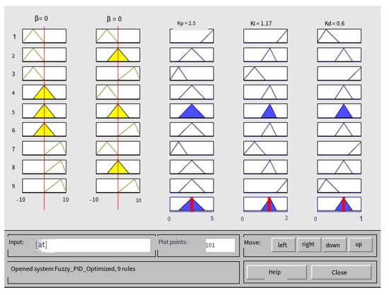 were set in MATLAB; these input variables were used to dynamically adjust the three output parameters of the PID controller: proportional gain (