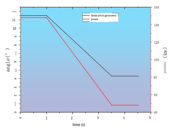 We set the range of flow rate change to 0–2 m/s for the simulation experiment and tested both the PSO-PID and fuzzy PID, monitoring the real-time changes in slurry distance angle and generator power (