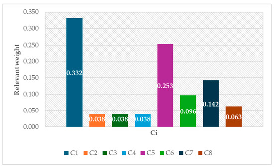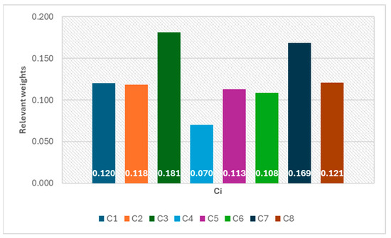 - Objective criteria weights are determined based on Equation (9), by normalizing values Cj to unity.