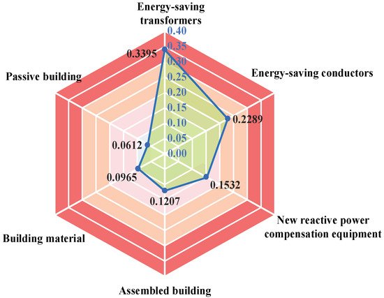 As can be seen from the radar chart derived using the hierarchical analysis method, passive buildings have a certain effect on carbon reduction, although the effect is not particularly prominent but still a feasible method of carbon reduction.