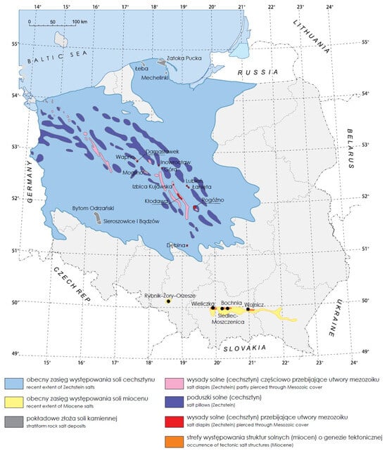 Map of rock salt deposits in Poland (based on ref. [14]).