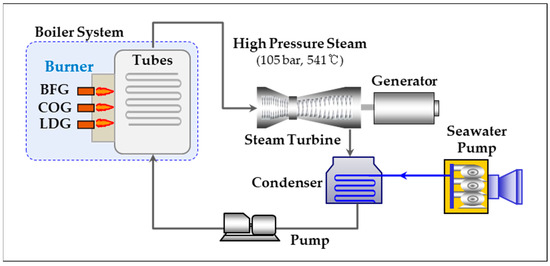 Most steel mills continue to recycle these by-product gases generated during the steelmaking process to improve their energy efficiency and minimize their environmental impact [12]. These gases contain sufficient energy for use as fuels, so 99% of them are recovered and either directly reused in the steelmaking process or transferred to power generation facilities within the steel mills to produce electricity [13]. In Korea, companies P and H operate blast furnace-converter-coke oven processes and use by-product gases as process or power plant fuels [4].