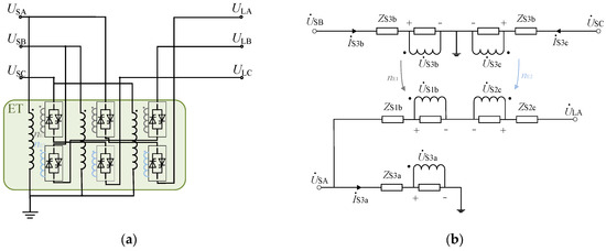 (a) Topology structure of SCSUD-TCPST; (b) a phase-equivalent circuit diagram of SCSUD-TCPST.
