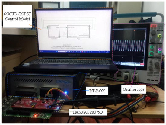 As shown in Figure 11, the aforementioned simulation results were further verified by the hardware-in-loop experimental platform based on RT-BOX and TMS320F28379D. As shown in Figure 12, the output active power of SCSUD-TCPST is required to be regulated from 100 MW to 50 MW under the parameters shown in Table 6. These results further verify that the SCSUD-TCPST possesses sufficient dynamic characteristics and is well suited for applications in power flow control.