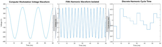 We similarly isolate the time domain expression of the oscillatory pattern of a power system harmonic. However, since we are examining the properties of a component with a known and well-defined central frequency, it is unnecessary to iteratively subtract the intrinsic modes in the time domain to discover it as in traditional EMD. Instead, we apply a high-pass filter to eliminate the fundamental, cascaded with notch filters to eliminate the other harmonics and modified Savitzky–Golay smoothing to eliminate the high-order noise. Sifting is used as a final means to eliminate the low-frequency distortion that the high-pass filter did not remove.