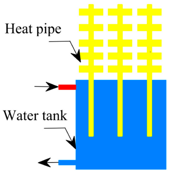 A TDT consists of an insulated water tank beneath or above ground and heat pipes, as shown in Figure 2. It is built as a thermal diode, so it allows heat transfer in only one direction, i.e., it can only release heat to the environment when the water temperature is higher than the ambient temperature, but it does not absorb heat from the environment, even when the ambient temperature is higher than that of the water inside the tank. Being an insulated passive system, the TDT consumes no water and operates at no cost. Another important advantage is that it does not need maintenance after installation.