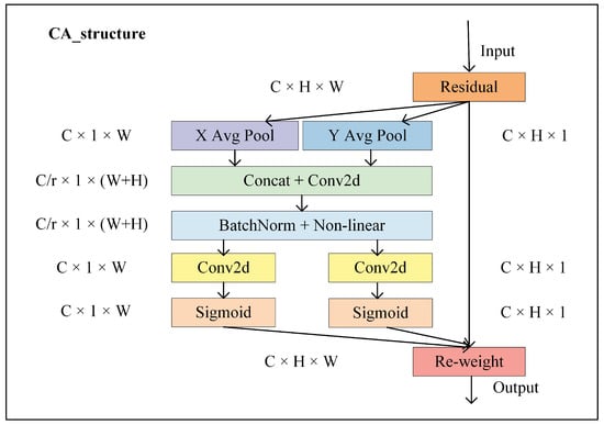 To overcome this limitation, the CA module introduces a novel approach by splitting the global pooling process into two one-dimensional encoding steps. One step handles the vertical spatial direction, and the other handles the horizontal direction. This decomposition allows the model to retain detailed location information along both spatial axes while simultaneously capturing long-term dependencies in each direction. The outputs from these encoding steps are then aggregated to form direction-aware feature maps, which enable the attention mechanism to focus on spatial interactions within each axis independently.