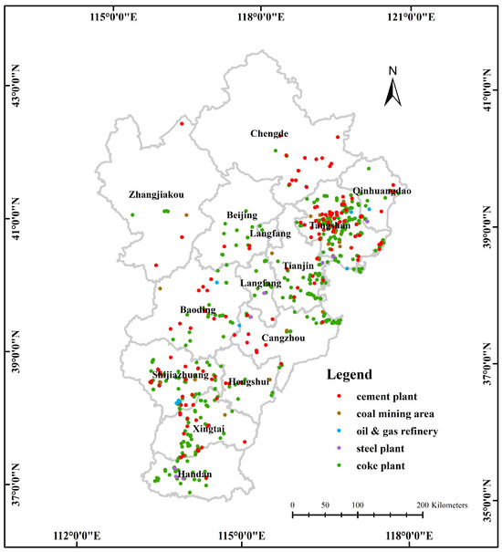 IHSs were divided into five categories based on the specific industrial characteristics and associated resource consumption level of each IHS plant: cement plants, coke plants, coal mining areas, oil and gas refineries, and steel plants [23,63,64].