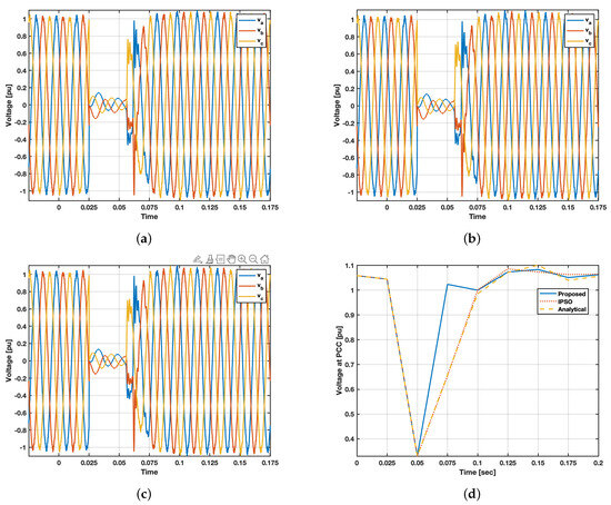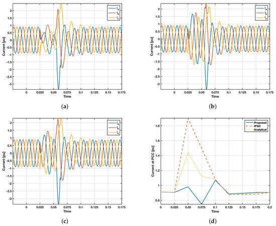 The results highlight the better stability and consistency of the proposed method. For THD, the proposed method achieves a 38% improvement over the analytical method, which has the lower distortion among the other two methods at 30%, i.e., (). Similarly, the proposed method significantly reduces recovery time by at least 50% compared to the IPSO and analytical methods, which both hover around 50ms. Current overshoot sees the most dramatic improvement, with the proposed method showing a minimum improvement of 81% reduction compared to IPSO and analytical methods. These substantial improvements underscore the effectiveness of the proposed method in addressing critical challenges related to fault conditions.