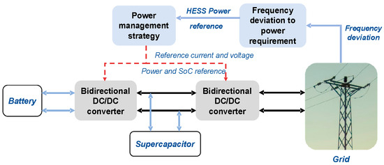 A new semi-active Battery-SC hybrid scheme with variable voltage control for firm frequency response services was proposed by Li et al. [43]. It improves the utilization rate of SC, at the same time reduces the cost of the converter. Figure 3 shows the configuration of HESS.