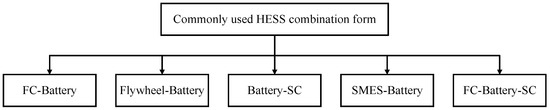 In an ideal HESS, one of the energy storage devices is high energy storage (HES), which is used to satisfy long-term energy needs [39]. Another type of storage is high power storage (HPS), which is used to handle power transients and fast load fluctuations. We can obtain a variety of HESS combinations by analyzing different energy storage technologies’ HES and HPS characteristics.