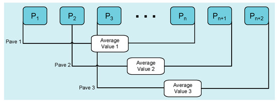 The basic principle of the moving average method is to average a series of data (such as a PV power data series) according to a certain window size [66]. The ESS can reasonably arrange charge and discharge according to the power change trend after the moving average to achieve smooth control of PV power [67]. A power distribution method based on multiple moving average filtering is proposed in [68]. First, the minimum total power instruction of HESS satisfying the requirements of suppression is obtained, and then the respective power instruction of the battery and SC is obtained through multiple moving average filtering. At the same time, the Pearson correlation coefficient is introduced to judge the number of filters and the size of the sliding window. The volume of HESS is determined according to the power distribution results. Finally, the life cycle quantization model of the battery is established to limit the mode aliasing and reduce the comprehensive cost of HESS. The moving average method is shown in Figure 10.
