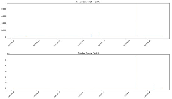 Thus, as part of the pre-processing phase, we performed a removal of certain outliers corresponding to physically implausible values of reactive energy and energy consumption for the machinery. These outliers were identified based on domain knowledge and statistical analysis. After removing these outliers, we filled in the gaps using linear interpolation, which helped maintain the continuity of the dataset while ensuring that the corrected values remained within a reasonable range.