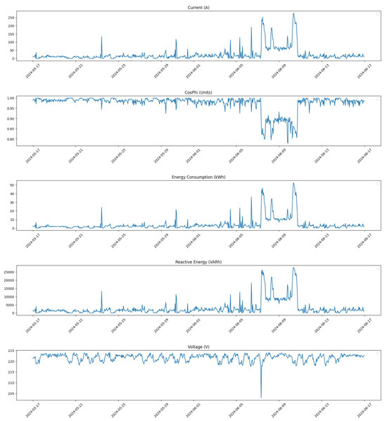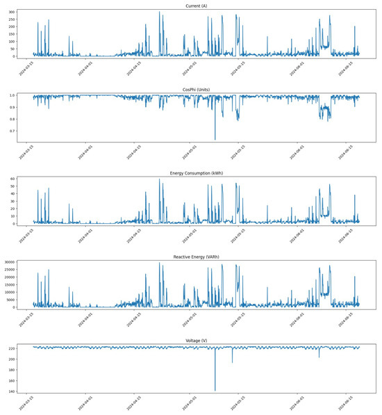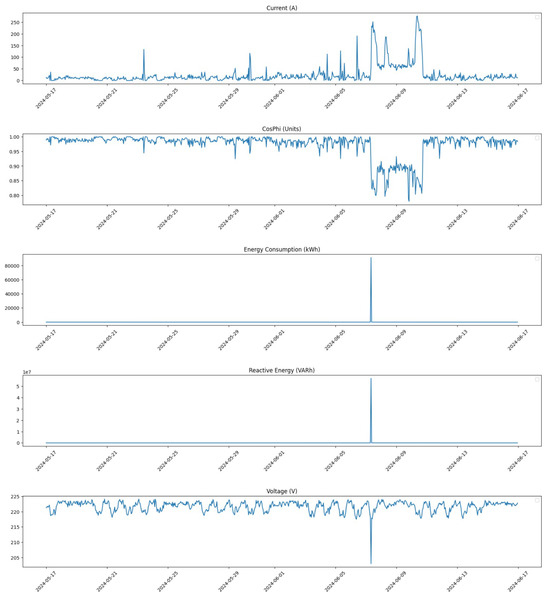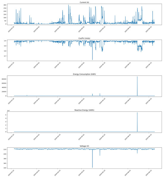 Data collection was conducted with an hourly granularity, which is crucial for enabling timely interventions and facilitating a thorough analysis of energy consumption trends throughout the day. This level of detail allows for the identification of patterns that may indicate potential anomalies, thereby enhancing our predictive maintenance capabilities. The specific timeframe for data collection spans from March to June 2024. This period was chosen because it reflects full operational capacity, as the facility tends to operate at reduced levels during the summer months due to employee holidays. Consequently, data from March to June provide a more accurate representation of normal operational conditions, making it ideal for training and testing our models.