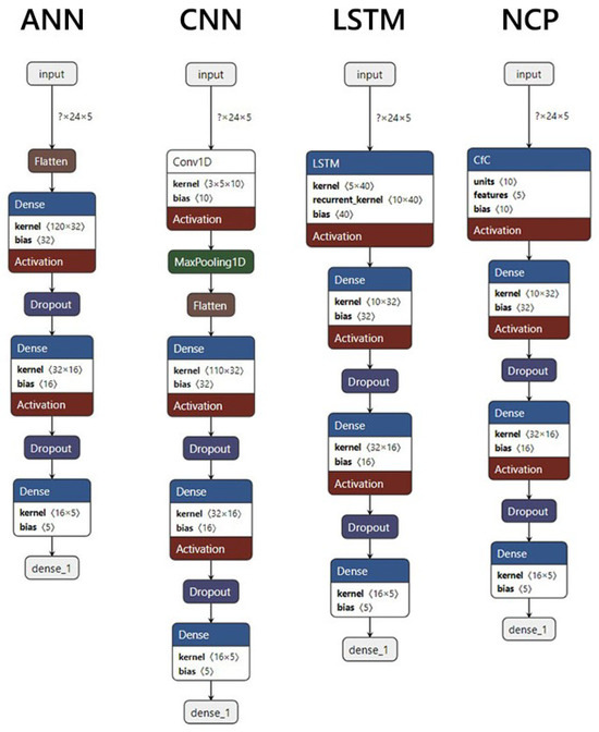 - Palma, G.; Chengalipunath, E.S.J.; Rizzo, A. Time Series Forecasting for Energy Management: Neural Circuit Policies (NCPs) vs. Long Short-Term Memory (LSTM) Networks. Electronics 2024, 13, 3641. [Google Scholar] [CrossRef]