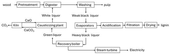 Simplified scheme of kraft pulping process with lignin coproduction.
