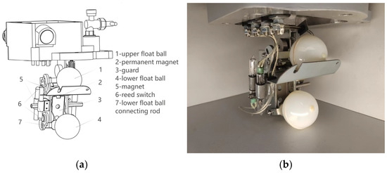 Construction diagram of BF type double float ball gas relay: (a) 3D model diagram; (b) physical picture.