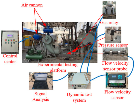 The design of the testing platform body includes eight parts: an air compressor, air cannon, pulsating flow chamber, tested pipeline, gas relay, bellows, butterfly valve, and capsule oil conservator. It is worth noting that the pulsating flow chamber is filled with transformer oil, and its oil level is about 0.2 m away from the air cannon blasting port.
