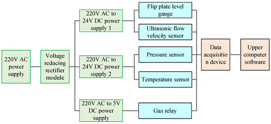 During the experiment, it is necessary to measure the internal pressure, oil flow velocity, and heavy gas signal of the pipeline. Therefore, the measurement system includes temperature sensors, pressure sensors, ultrasonic flow velocity sensors, BF type double float ball gas relays, flip plate level gauges, data acquisition instruments, and upper position machine software, as shown in Figure 8.