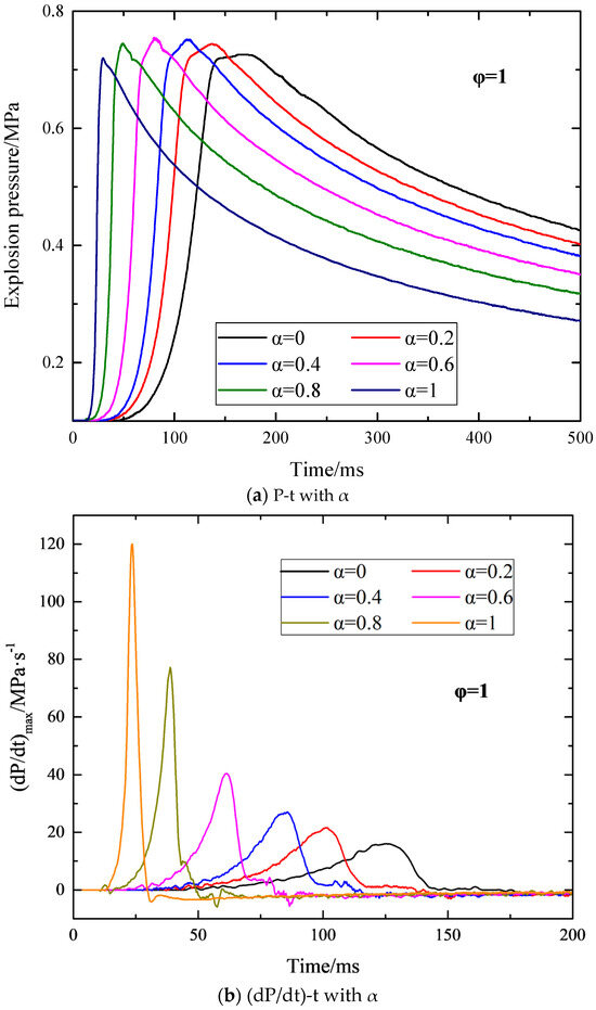 - After α > 0.6, (dP/dt)max and flame radius suddenly increase with the addition of hydrogen, and hydrogen begins to play a dominant role in the explosion behavior of H2/CH4/air mixtures.
