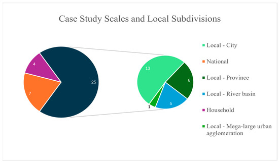Conversely, countries like Greece and Malaysia showed an equal balance between their number of publications and case studies (two each), while others like Latvia and Algeria featured single case studies, reflecting limited but targeted research. Notably, Algeria was represented through a focused study on water resources, highlighting the critical resource challenges faced in arid regions.